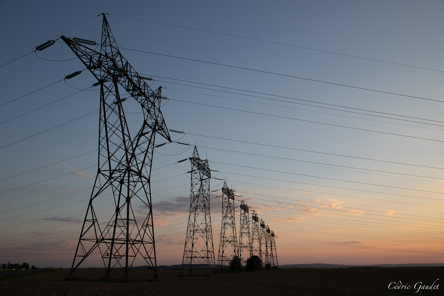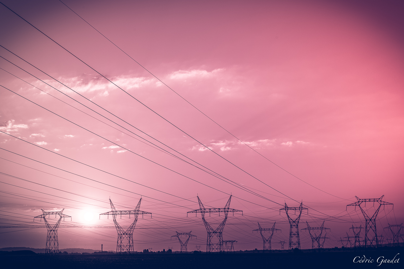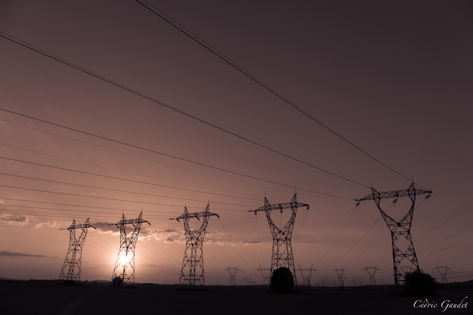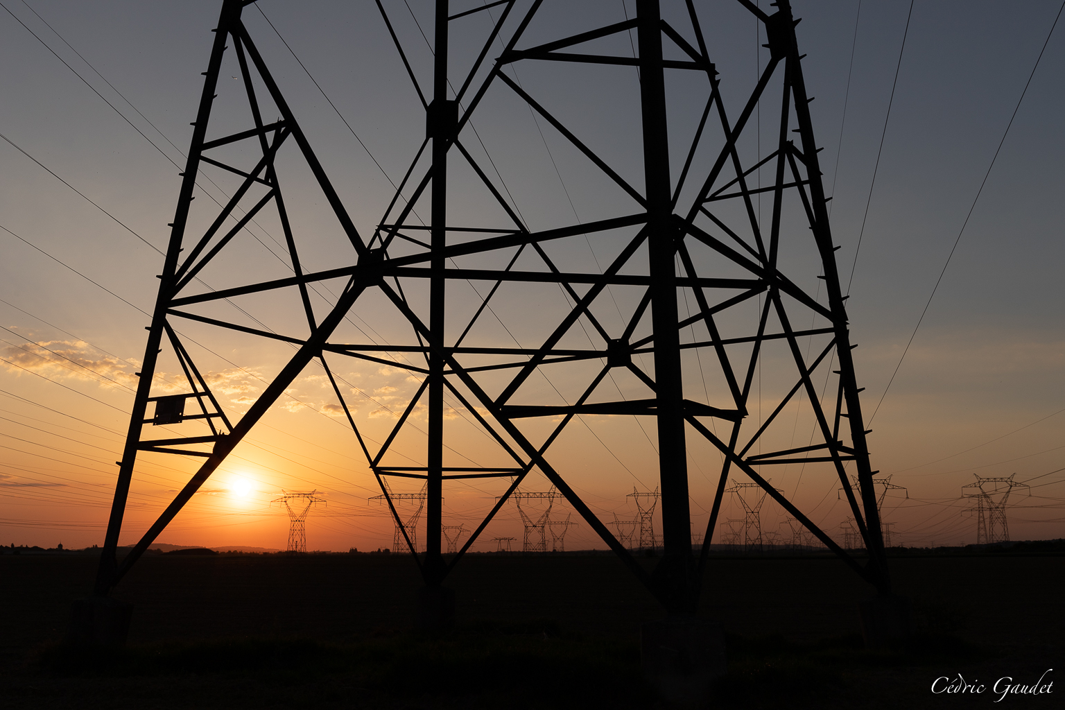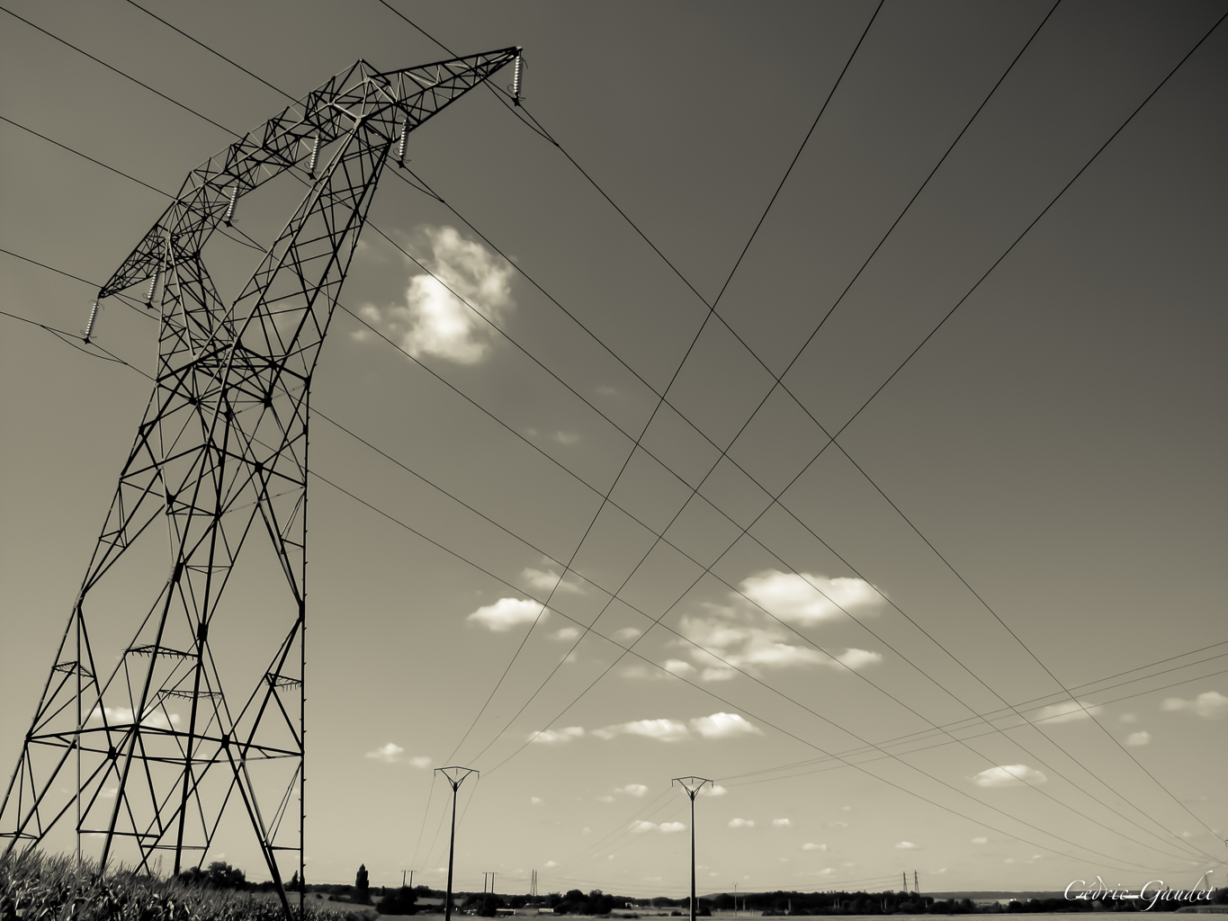 Ils trônent au milieu des champs à travers la campagne et en périphérie des villes, les pylônes des lignes à haute tension… Souvent inesthétiques, ils offrent quelquefois un graphisme intéressant, voire même gracieux, dans la composition de certains paysages ruraux ou périurbains…